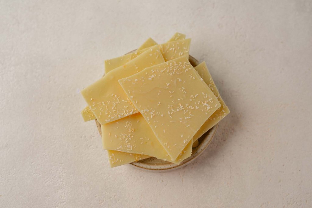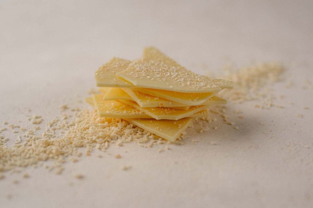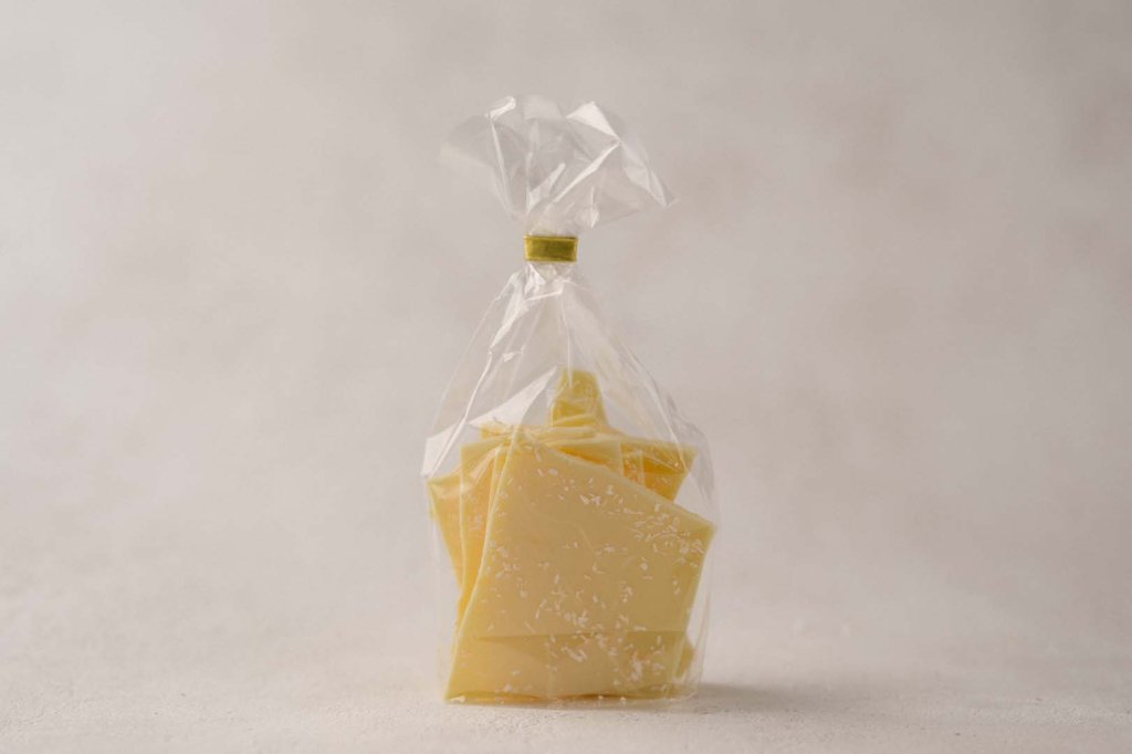Eine verführerische weiße Schokolade, inspiriert vom klassischen Piña-Colada-Cocktail – eine tropische Kombination aus cremiger Kokosnuss und erfrischender Ananas, die in der zarten Süße der Schokolade verschmilzt und ein Urlaubsgefühl auf der Zunge zaubert.