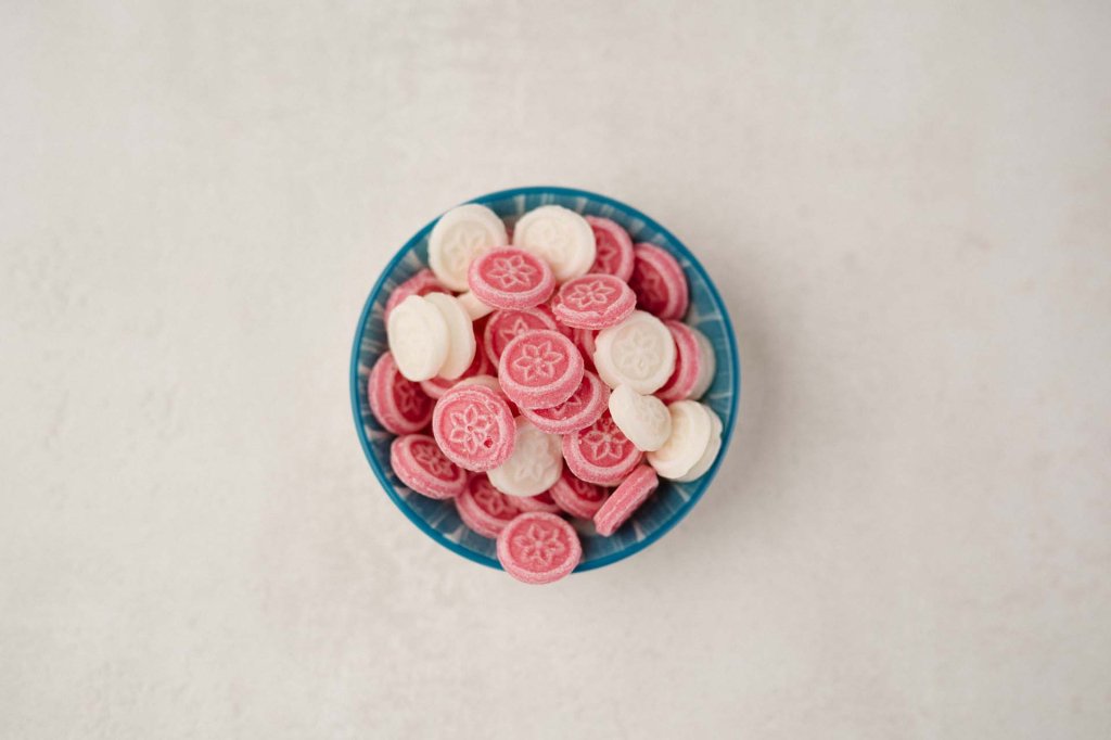 Zucker, Glukose, Natron, Zitronensäure, natürliches Aroma, Farbstoff: echtes Karmin E120.