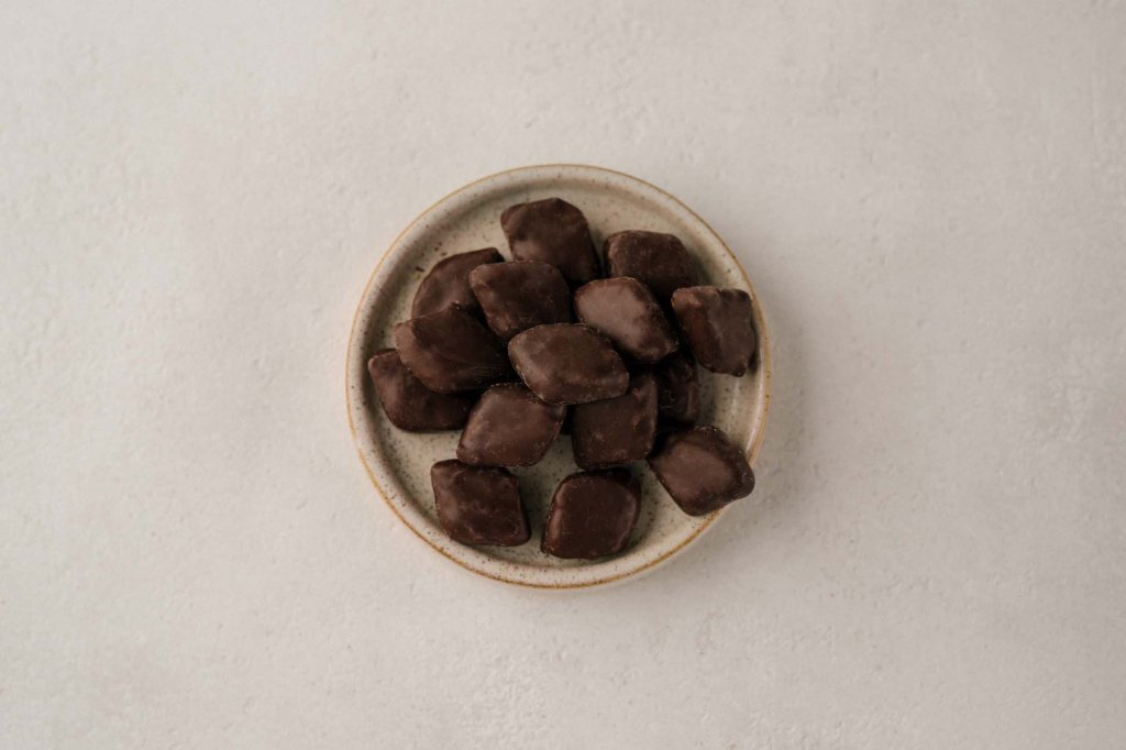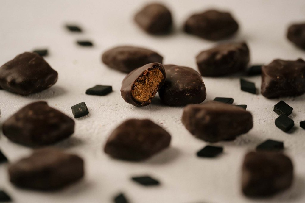 Weiches, kräftiges Lakritzfondant trifft auf zart schmelzende Schokolade.